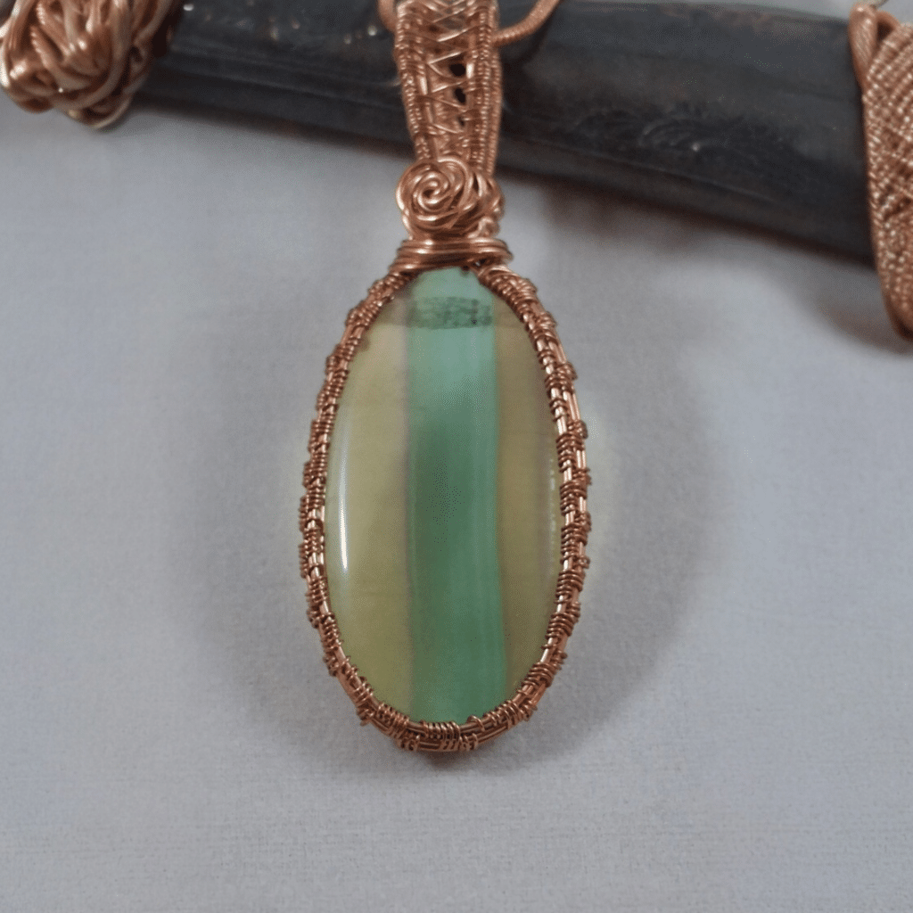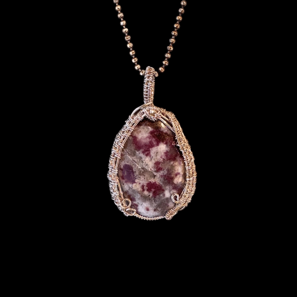 Welcome to my studio. My wire weave jewelry is inspired by nature and organic forms, and each piece is handcrafted using carefully selected stones and metals. As you look around, you’ll see works in progress and get a glimpse into the patience and craftsmanship that bring each design to life. I’m passionate about sharing this art form in a way that builds both skill and confidence in my students.