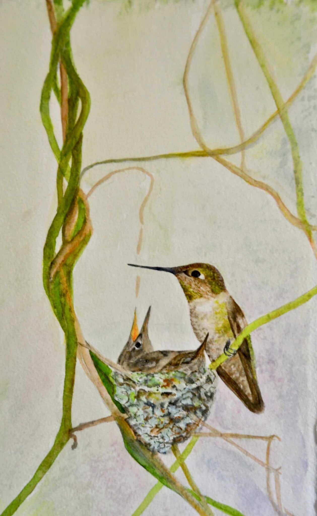 Nature’s beauty has always called to me. Therefore 1 find myself painting those images. I have gardened all my life, attracting birds, butterflies, bunnies, all kind of wild life to my gardens. These become the subjects of my paintings. I enjoy the details one can find in nature.