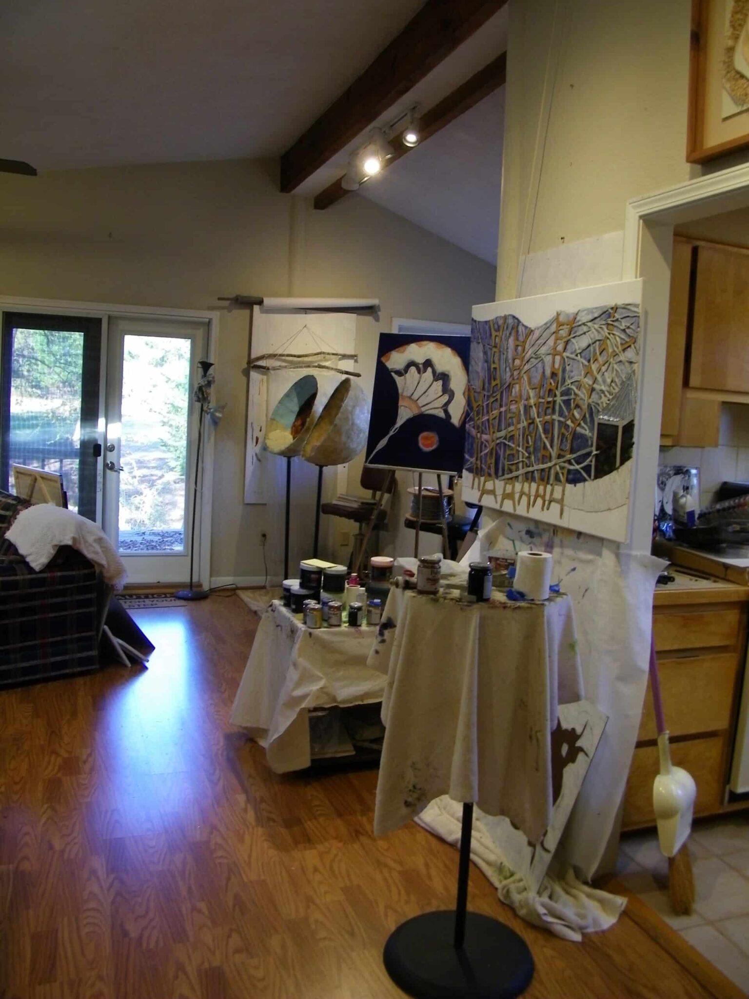 As I view the world around me, I see everything as moving lines. The crossing, intersecting, and lyrical flow of the lines form the basis of my work. I rarely draw from real life. I use my impressions of life as the basis of my work. I constantly make pencil sketches that are inspired by nature, world events, life and death. As I sit with a pencil and paper, I interpret life as it occurs to me in line drawings. These are more mind drawings than life drawings. Quick line sketches are the beginning of each piece. How the work evolves from these sketches is determined by the materials used. I use wood, paper, fabric, string, clay, and paint as I turn the pencil sketches into the work that I produce. In most cases, realistic images can be determined in the work but the recognition of what the viewer is seeing or not seeing is secondary to the overall image.