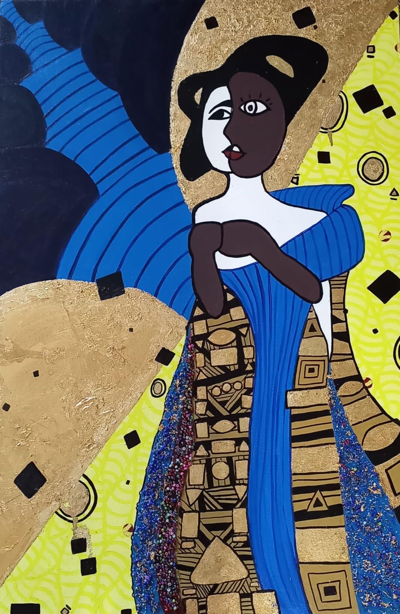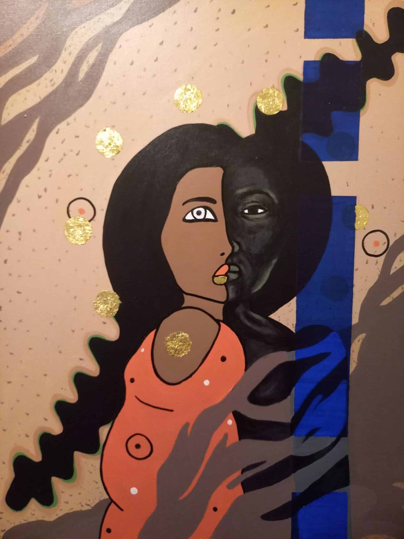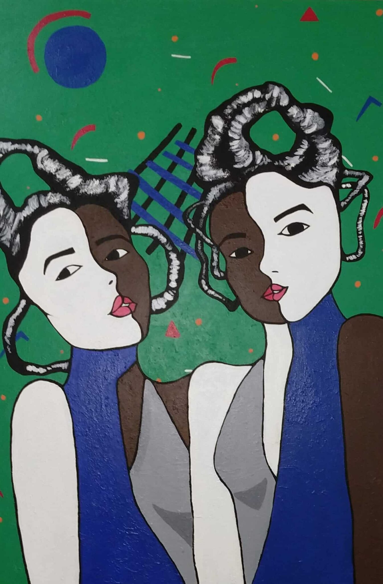 My paintings are inspired by the theories of Cubism, Kandinsky, and Lois Mailou Jones. This ten-piece series helped me work through my thoughts and interactions with the performative aspects of Western society’s interactions with black women. By presenting the duality of the black woman’s experience by displaying who she is vs how she is seen by society. With this series I want the audiences to understand that black women are multifaceted and shouldn’t be limited based on myths. And how race and gender distort our views of humans by lowering them to myths.