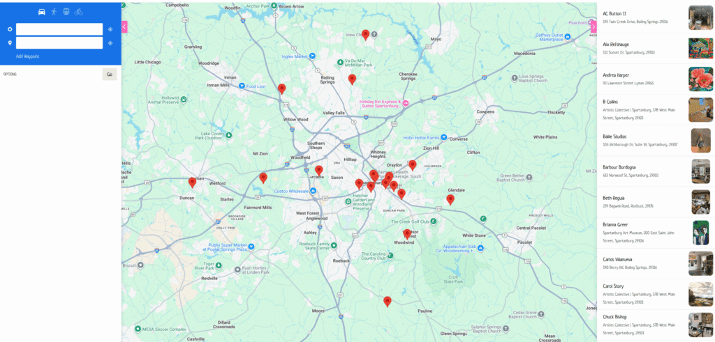 To help you navigate the tour, an interactive online map is available on the Open Doors Studio Tour Spartanburg website opendoorstudios.art/map. This map provides a comprehensive guide to the participating artists’ studios and other important locations. Here’s how to use it: