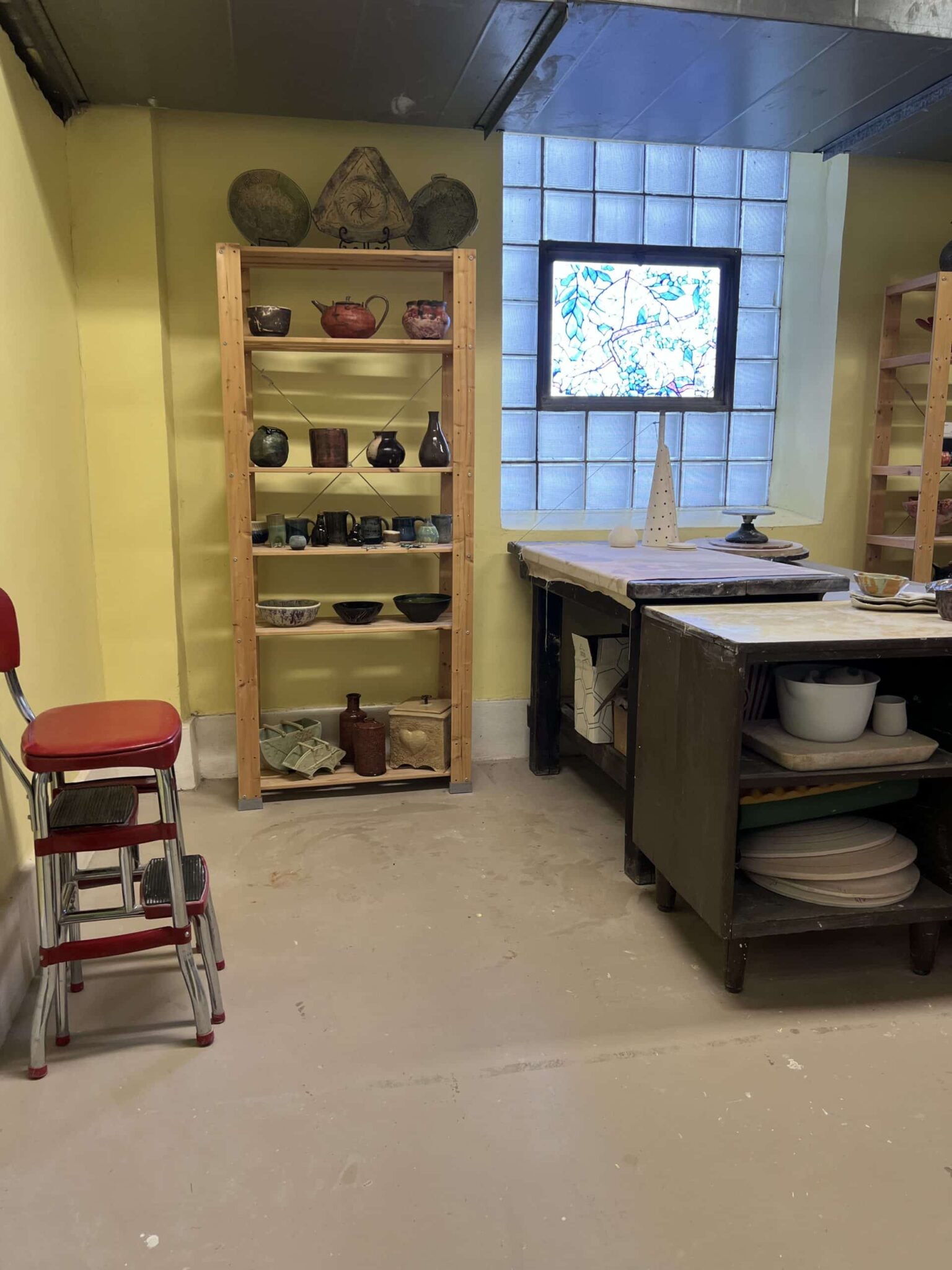 Located on the bottom floor of the Artists Collective Spartanburg. Follow signs to the Ceramics Area. Studio is the bright lime green door off the common area.