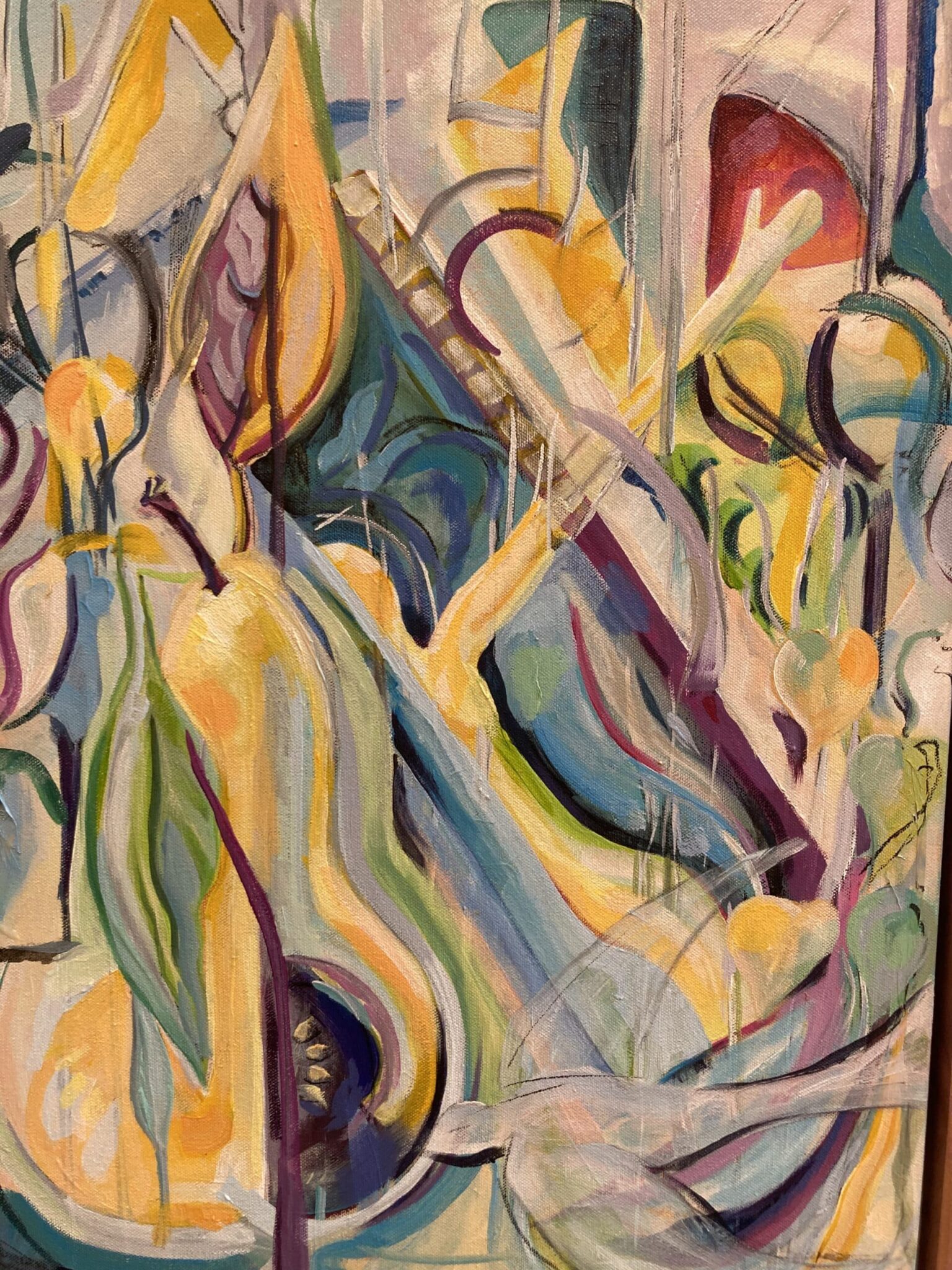 Nancy spends her time in her studio at Mayfair Art Studios preparing for upcoming exhibits. Watercolor, pastel, and collage are essential in her process. Small works on paper often lead to larger works in acrylic. Color and figurative abstraction in layered compositions are responses to current events and historical ties.