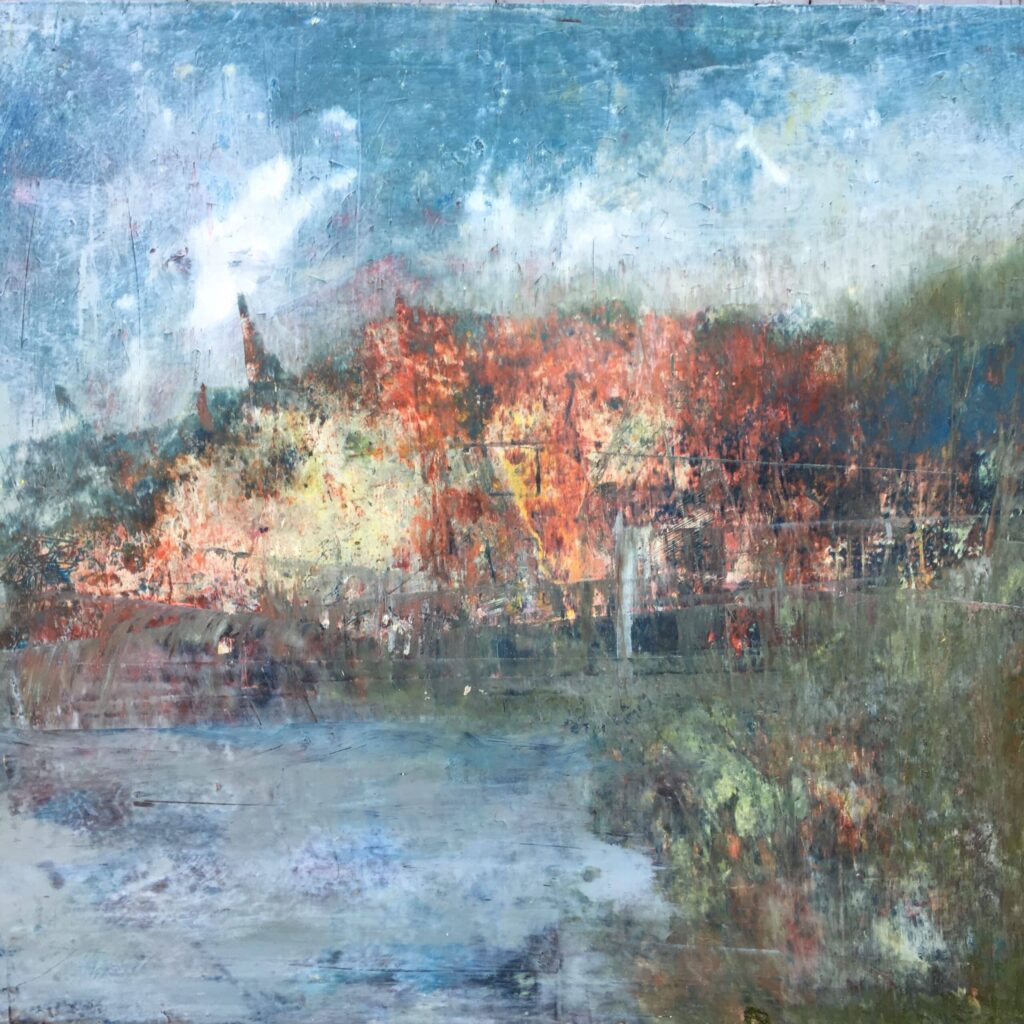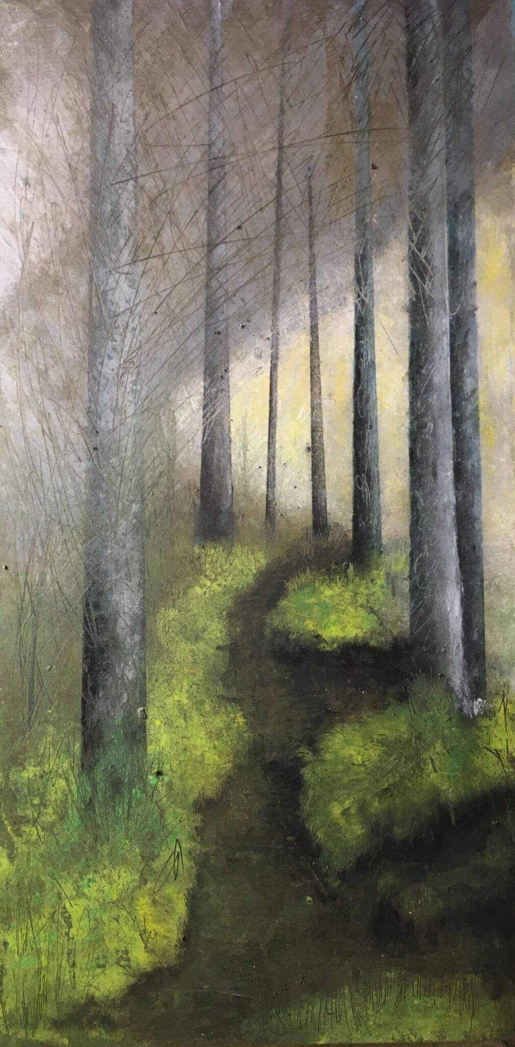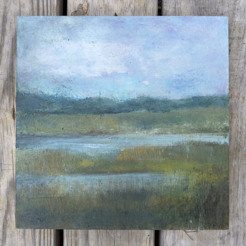 I try to share the wonder I find in nature by conveying my outdoor experiences in an ethereal way. I believe that being outside is good for the soul, and I believe living with artwork which reflects the beauty and spirituality of nature keeps us connected to the natural world. I use a combination of traditional oil paints and cold wax medium (a blend of bees wax and mineral oil) which allows me to explore a more impressionistic and abstract style using layers and texture.